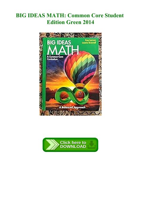 Free Download big ideas math common core student edition green 2014 Epub By Click Button. big ideas math common core student edition green 2014 it’s easy to recommend a new book category such as Novel, journal, comic, magazin, ect. You see it and you just know that the designer is also an author and understands the challenges involved with having a good book. You can easy klick for detailing book and you can read it online, even you can download it